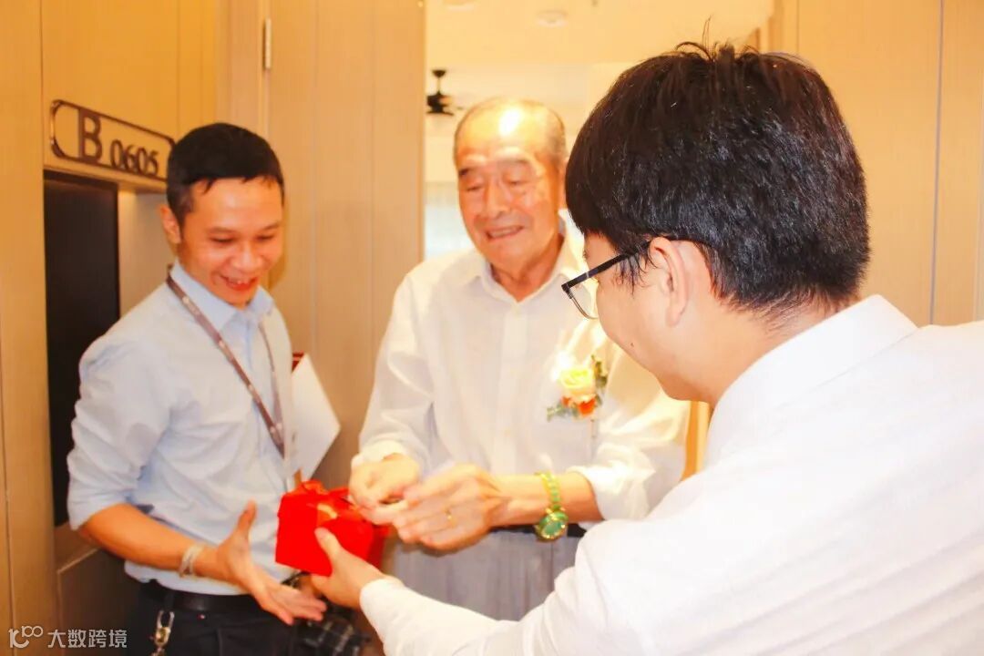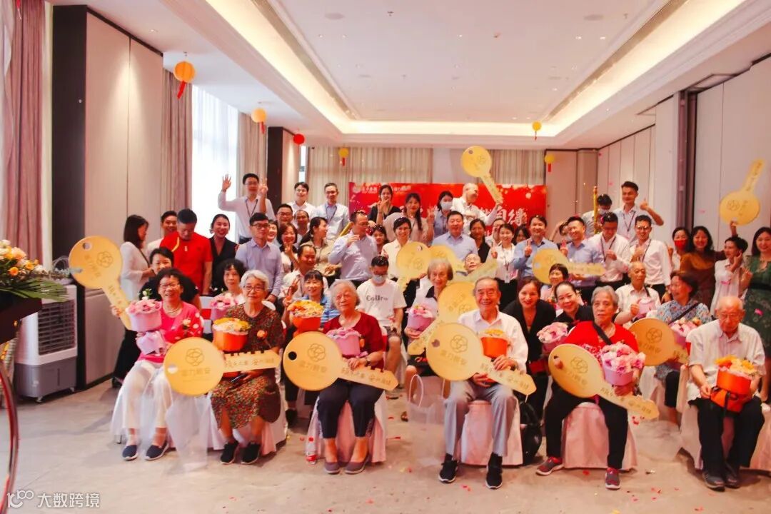 随后,就到了长者们分批上台领钥匙这一仪式,社区给每一位长者送上精心准备的鲜花,同时也留下一张张难忘的纪念!