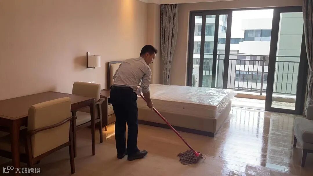 员工打扫长辈即将入住的房间
