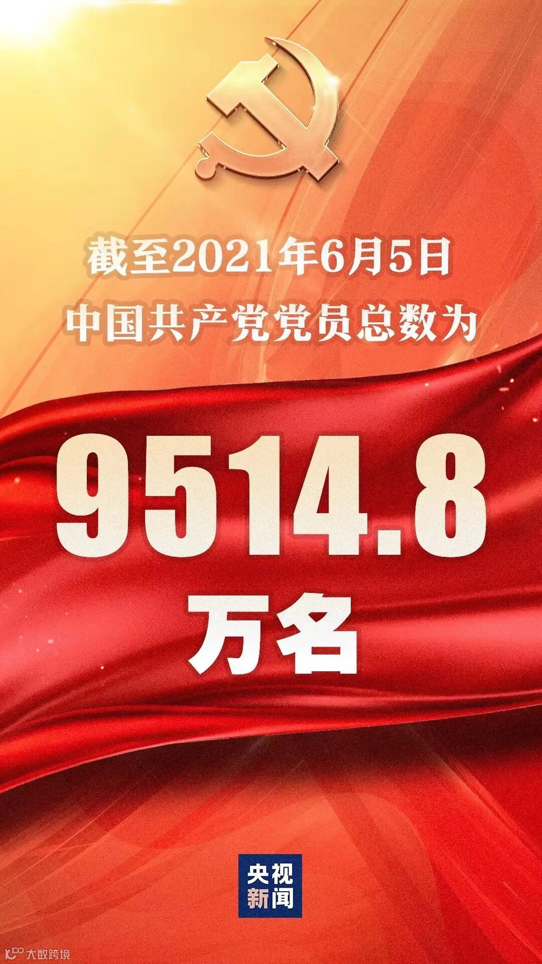 据中央组织部最新党内统计数据显示,截至2021年6月5日,中国共产党党员总数为9514.8万名,党的基层组织总数为486.4万个。历经百年风雨,中国共产党从小到大、由弱到强,从建党时50多名党员,发展成为今天已经拥有9500多万名党员、在14亿多人口的大国长期执政的党。