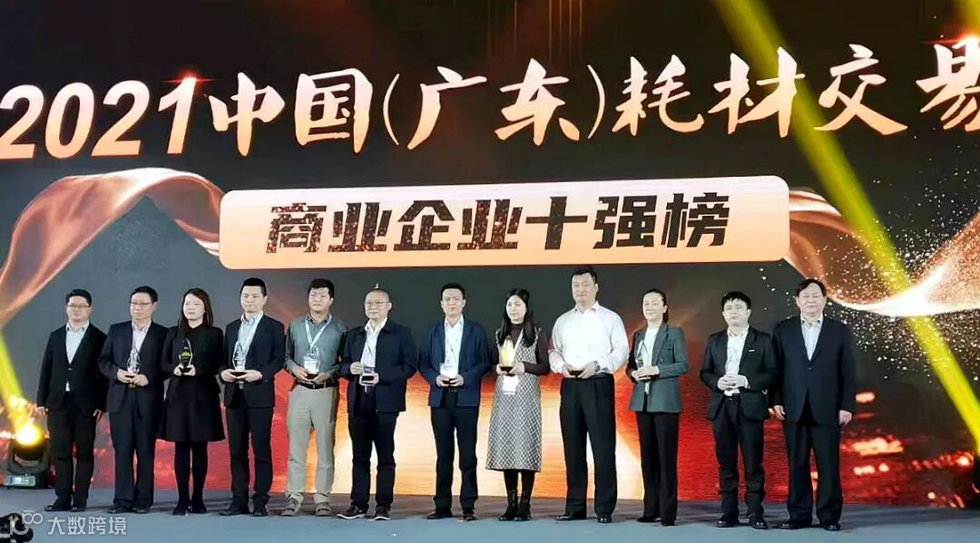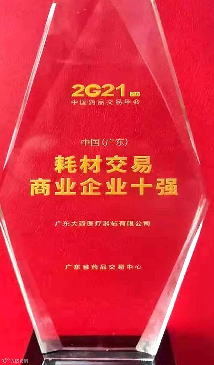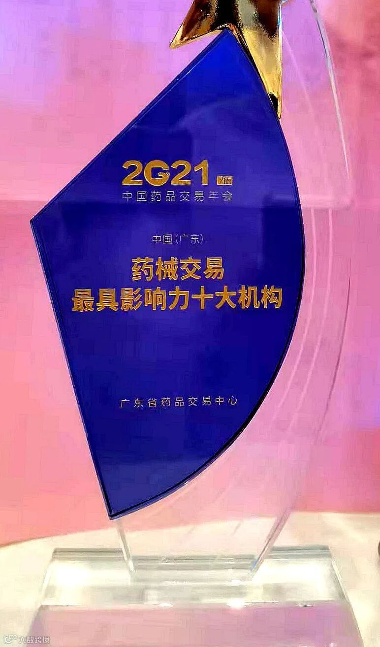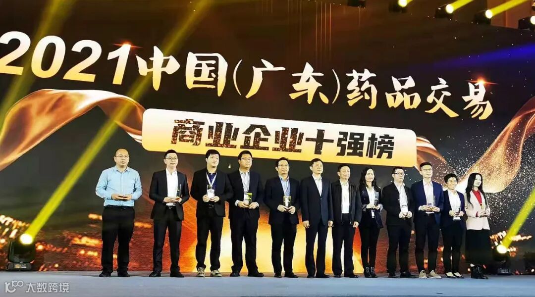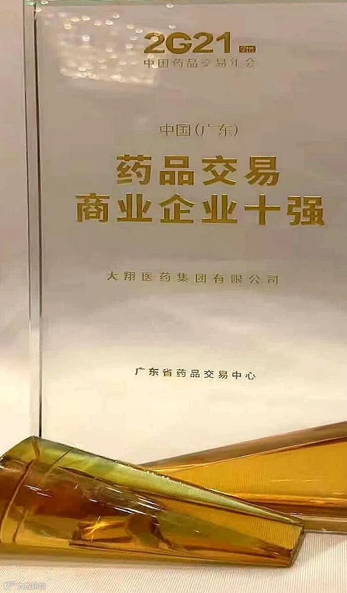 大翔医药集团有限公司荣获“2021中国(广东)药械交易最具影响力十大机构”荣誉称号,并在“ 2021中国(广东)药品交易商业企业十强榜”榜上有名。广东大琦医疗器械有限公司则在“ 2021中国(广东)耗材交易商业企业十强榜”金榜题名。集团副总裁王绪民、大翔医药集团有限公司副总经理黄静、大琦医疗器械有限公司总经理姚斐分别上台领奖。