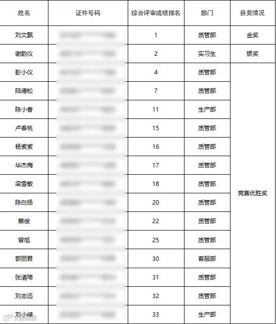 经过一天的激烈比拼,大翔中药刘文飘、谢韵仪沉着应战、不负众望、顽强拼搏,质管部刘文飘以综合成绩总分排名第一的好成绩荣获冠军,实习生谢韵仪以综合成绩总分排名第二名的成绩荣获亚军,同时大翔中药彭小仪、陈小香等14位同事荣获优胜奖。