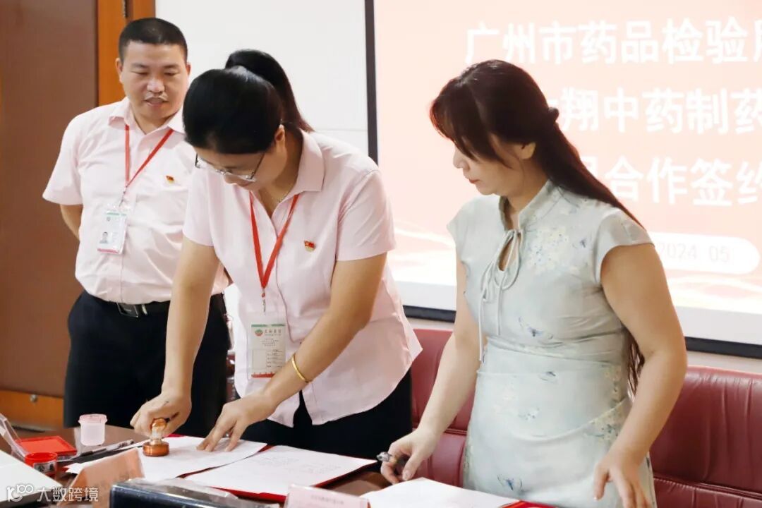5月28日,广州市药品检验所一分所左玲燕所长一行莅临集团大翔中药制药参观交流,并签订了科技项目合作协议。大翔集团广东大翔中药制药有限公司副总经理姜海波、林振华等领导参与座谈交流。