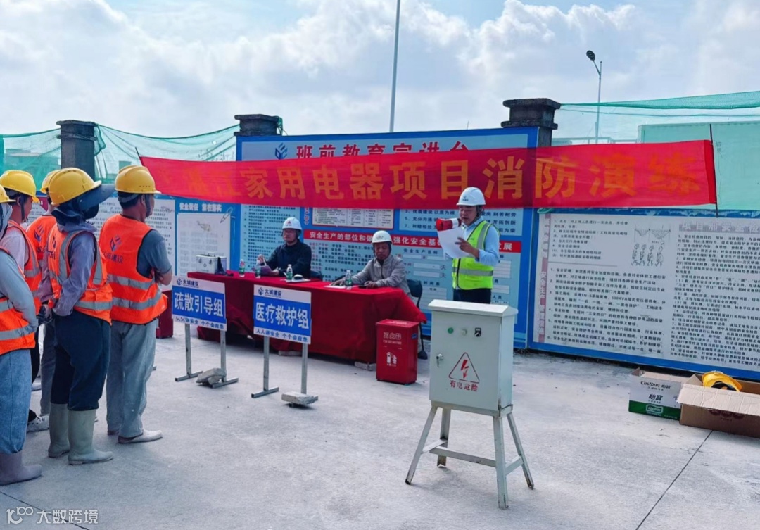 为深入贯彻“安全第一、预防为主、综合治理”的安全生产方针,严格落实复工复产“六个一”要求,提升项目应对各类突发安全事故的快速响应和应急处置能力,保障项目建设人员生命财产安全,2026年3月13日,广东省湛江市家用电器工业有限公司整体搬迁项目三期开展综合应急演练。本次演练涵盖消防、高温、机械伤害、高空坠落、物体打击、触电六大常见施工安全场景,项目各相关单位管理人员及一线作业人员参与。通过以演促练、以练筑防,切实筑牢项目安全生产防线,助力复工复产工作平稳有序推进。