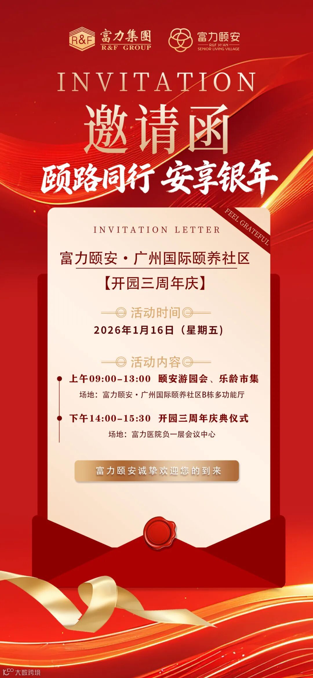 我们诚邀您共同欢庆“富力颐安开园三周年庆典活动”,见证我们三年来的成长与蜕变,展望更美好的颐养未来。