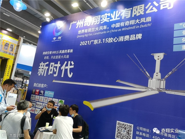 三天的展会期间,虽然受到疫情的一些影响,但是依然有不少物流展的老朋友一起来到展会上参观!在奇翔的展位却大有门庭若市的现象,工作人员也在不断地为伫立在展位的朋友们介绍大风扇的特点以及大风扇能够给企业带来的好处:奇翔大风扇高风量、低转速令空间产生1-3级立体自然风,覆盖范围可达直径40-50m(1500m²),体感降温3-5°,静音值38db,接近睡眠级标准。使工作环境更舒适健康,提升员工生产效率;使作业空间宽敞,提高空间利用率;安全节能,保障作业安全,既是气流,更是现金流!