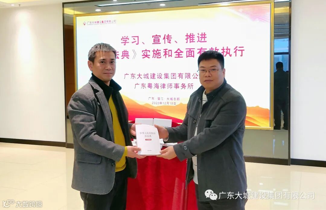 随后,林亮主任代表广东粤海律师事务所向我司赠送《民法典》。