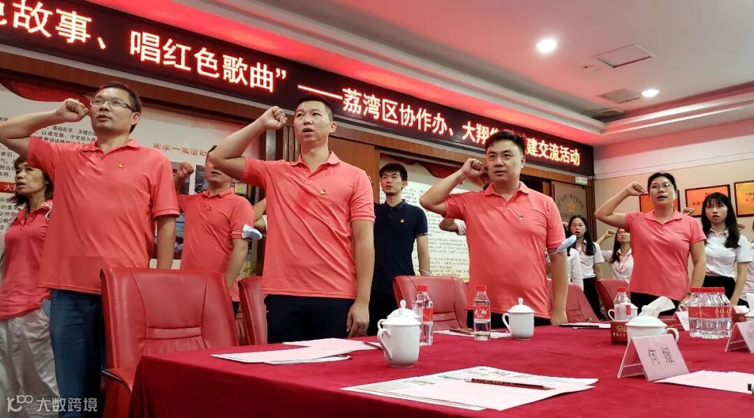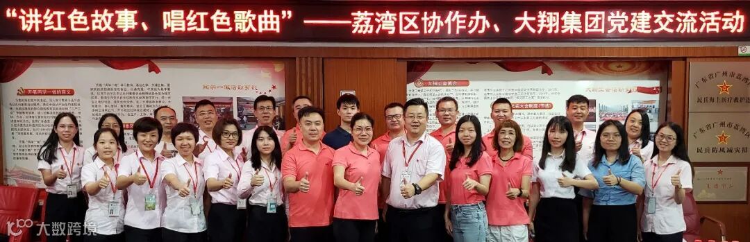 10月15日,荔湾区协作办在党组成员、副主任杜敏霞,党组成员、副主任甘伟俊的带领下,来到大翔集团总部,和大翔集团党总支副书记刘宗涌带领的党总支成员开展了一场以“讲红色故事,唱红色歌曲”为主题的党建交流活动。