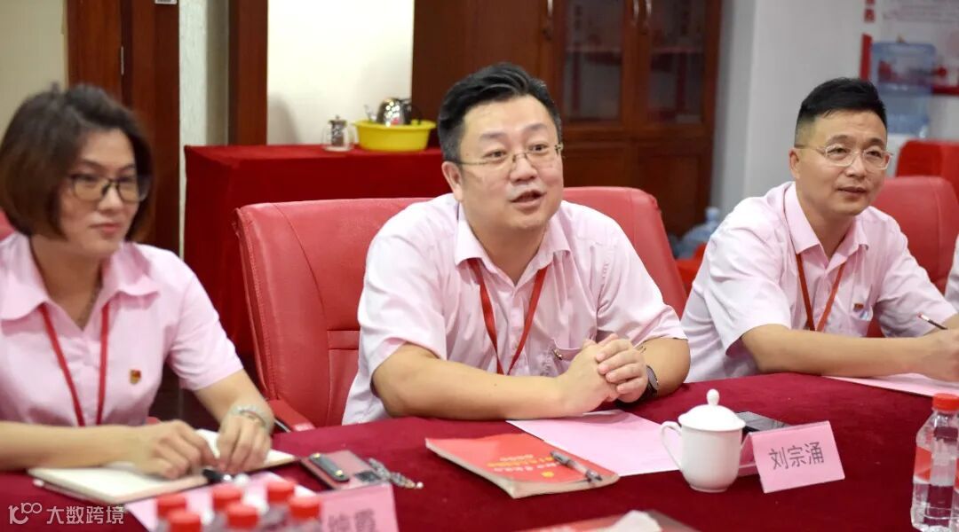 大翔党总支副书记刘宗涌(中)介绍集团党建情况