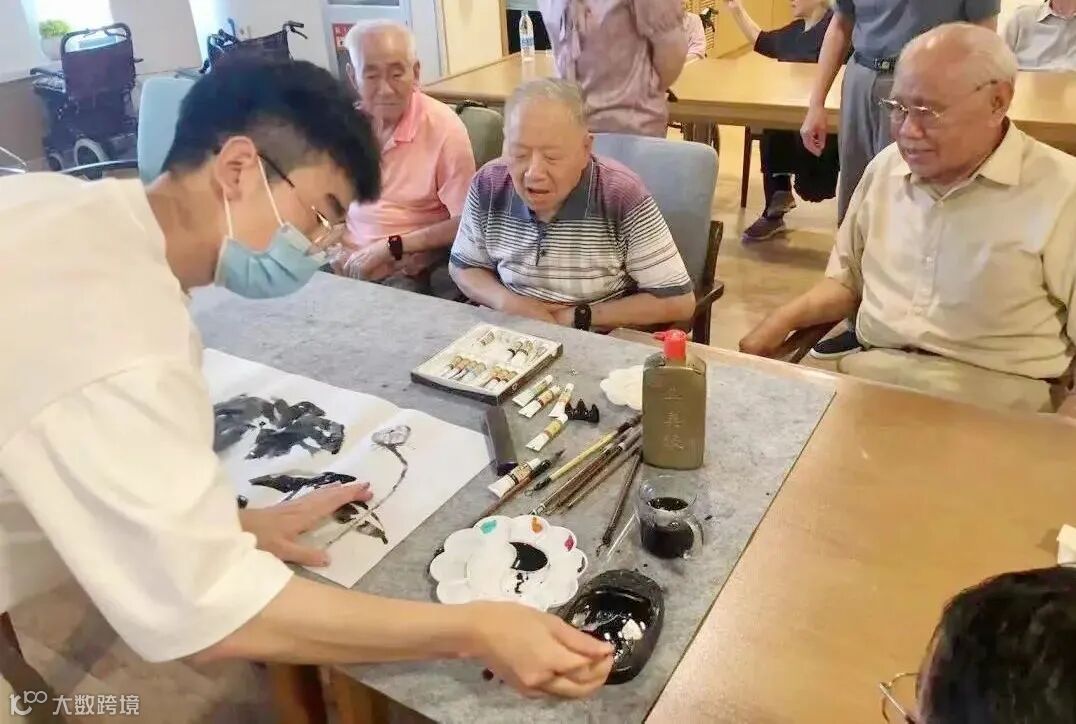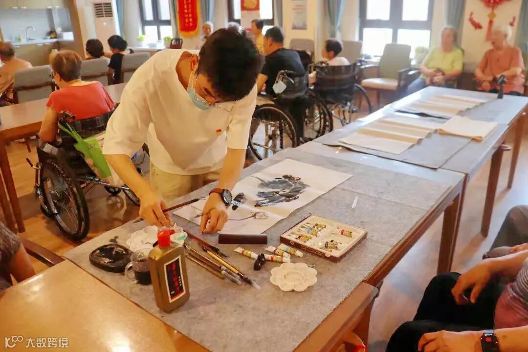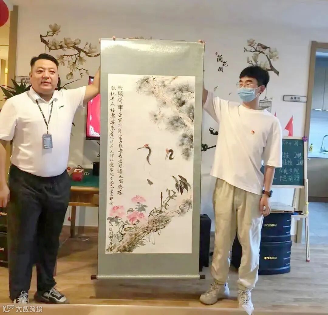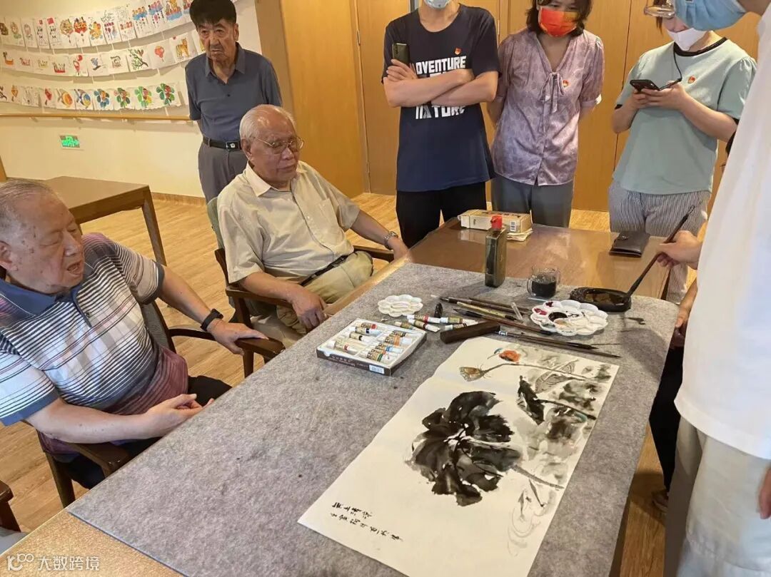 天津美术学院学生为老人作画