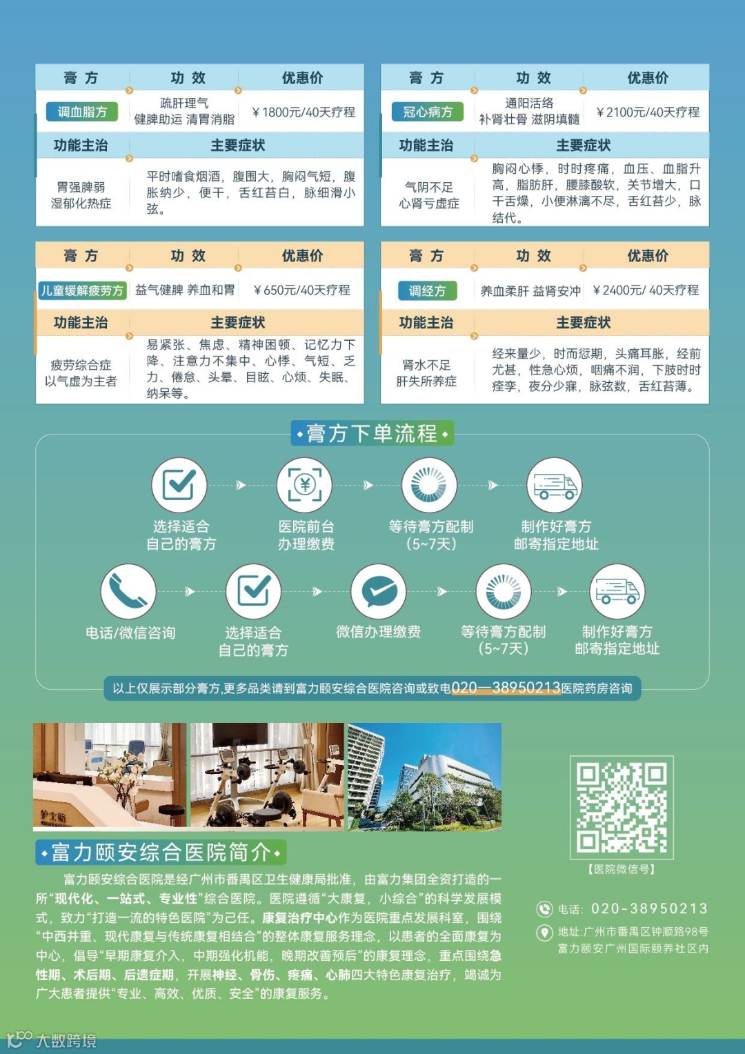 富力颐安综合医院精选名医大家的名方,特制符合岭南体质的岭南膏方,有需要的朋友可以直接拨打电话☎020-38950213咨询下单。