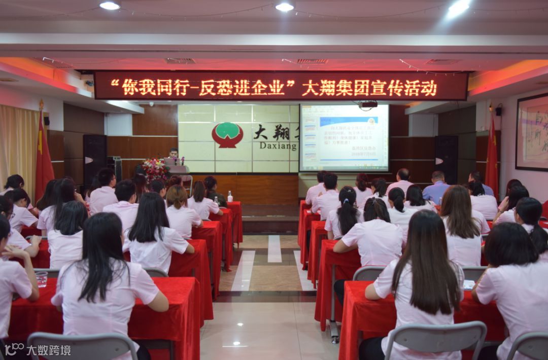 本次开展“你我同行-反恐进企业”大翔集团宣传活动的宗旨是:让反恐防范意识深入到每个公民的思想和行动中,坚决反对恐怖主义,防止宗教极端思想渗透,共同维护国家安全,共同建设平安羊城!