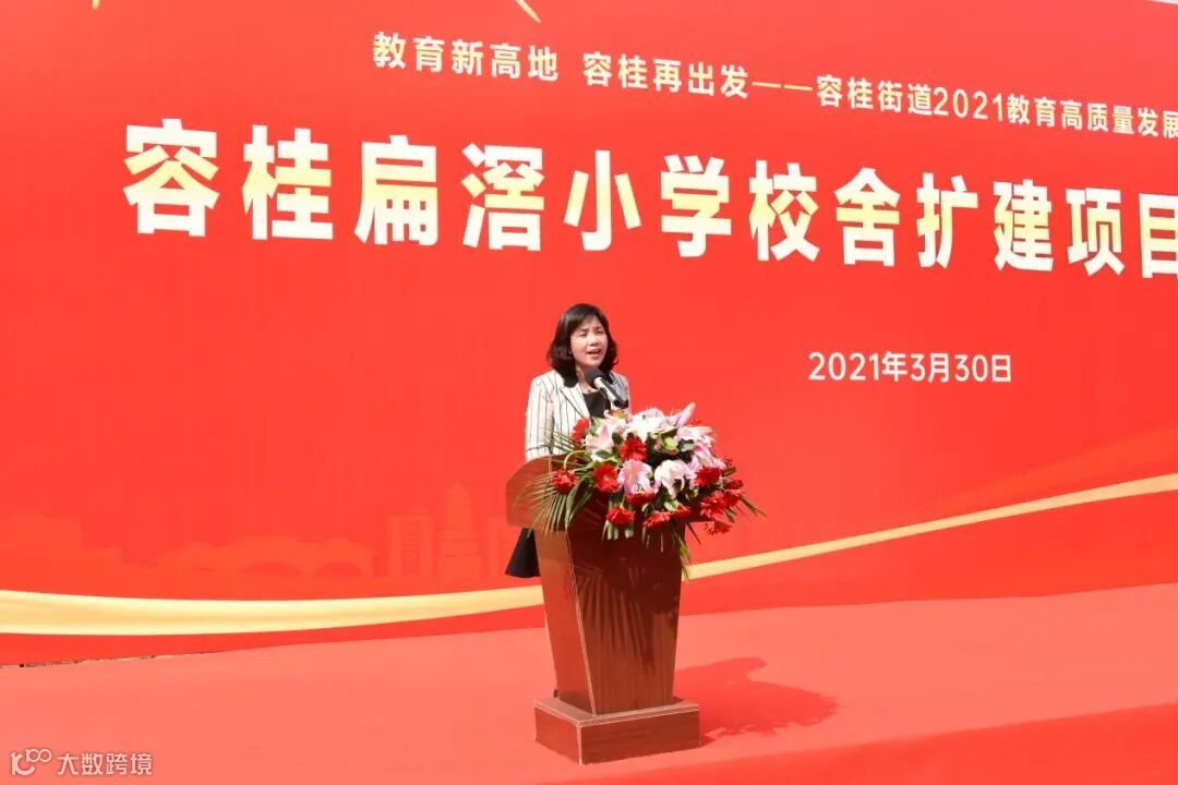 容桂街道党工委刘英华书记代表街道党工委、办事处进行讲话,并对扁滘小学校舍扩建项目的启动表示祝贺。