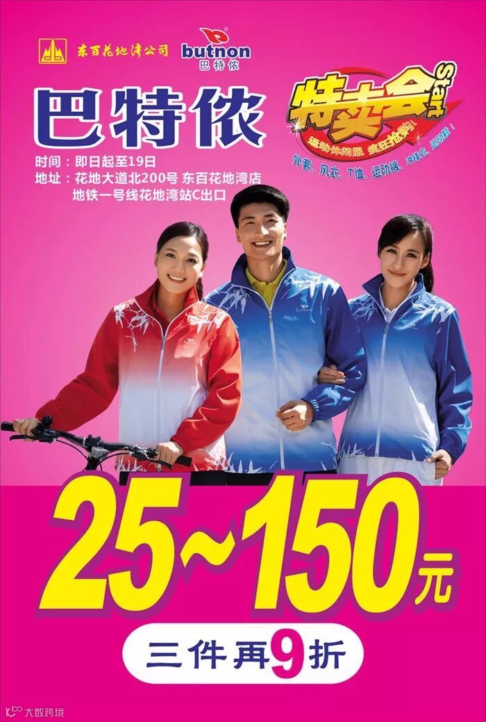 花地湾店:【巴特侬运动休闲服】特卖会25-150元,三件再9折!