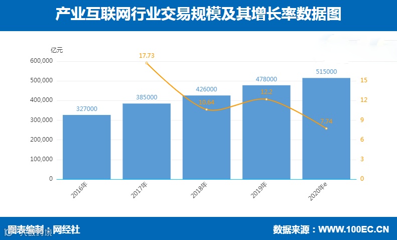 11月9日,电商智库网经社电子商务研究中心发布《2020年(上)中国产业互联网市场数据监测报告》。报告显示,2020上半年中国产业互联网市场规模达25.3万亿元,预计2020全年市场规模将达51.5万亿元。
