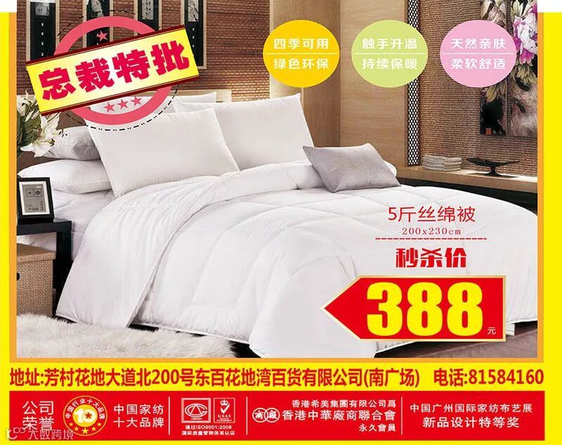 花地湾店:【希美床品】岁末清仓,震撼来袭!5斤丝绵被秒杀价388元!