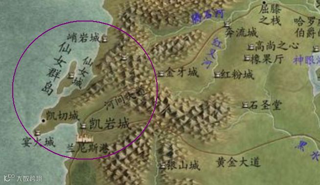 河湾地区位于大陆南部,有一股自北向南的洋流经过。这股洋流可以中和河湾地陆地的高温,既保证了该产区的足够光照,又能带来较大的昼夜温差,这对出产高糖分的葡萄极为友好。在提利尔领地的高山南麓,和高山下的大片谷地,都是是不错的葡萄产地,其中便有剧中出名的青亭岛。