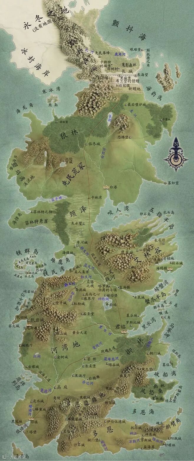 那么,为什么说整部剧和葡萄酒有着难解的渊源呢?我们一起来看下面这张维斯特洛地图,一起分析哪些区域适合种植葡萄。