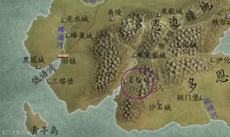 除了葡萄酒产地,葡萄酒的流通也是非常重要的。从地理分析星坠城应该会是一个葡萄酒贸易中心:在河流出海口,河流上游都是好的葡萄酒产区,特别是河两边的高山南麓,从地形看有点像法国的罗纳河谷产区。