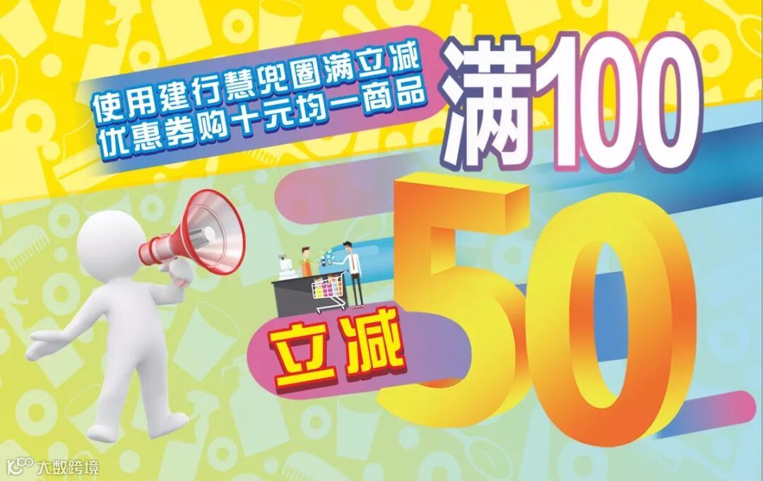 💰3月31日前使用建行慧兜圈满立减优惠券在超市购10元均一商品满100元可立减50元