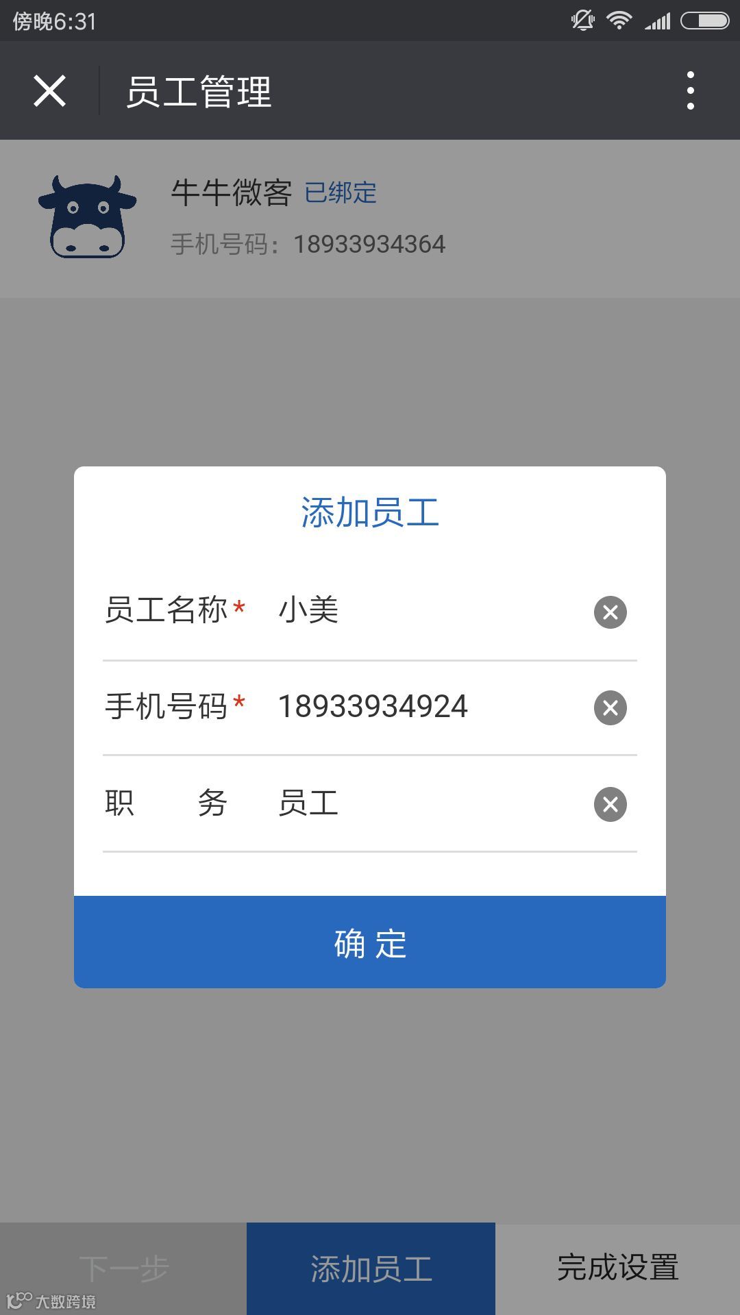 1.添加员工,全员使用牛牛微客