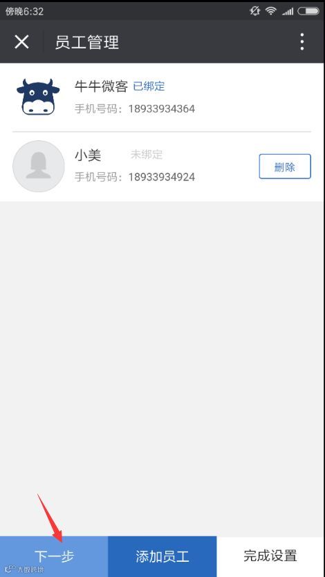 添加员工后,点击“下一步”分享给所添加的员工。