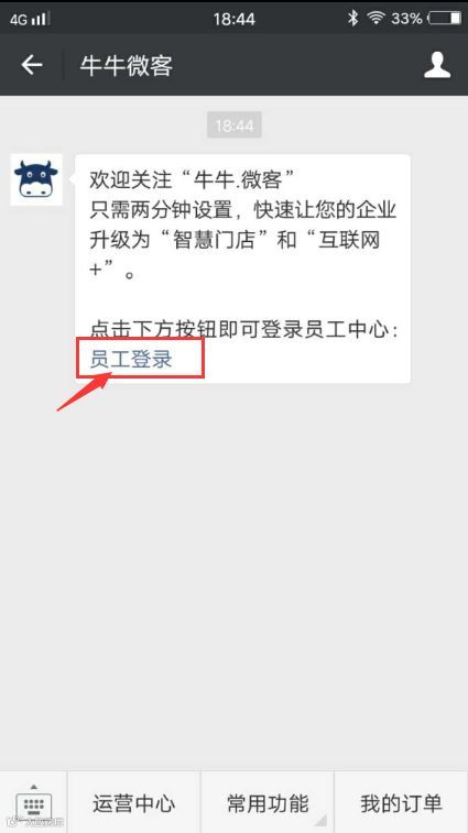 B.员工关注“牛牛微客”后,点击"员工登录",登录后即可免费使用牛牛微客的所有功能。