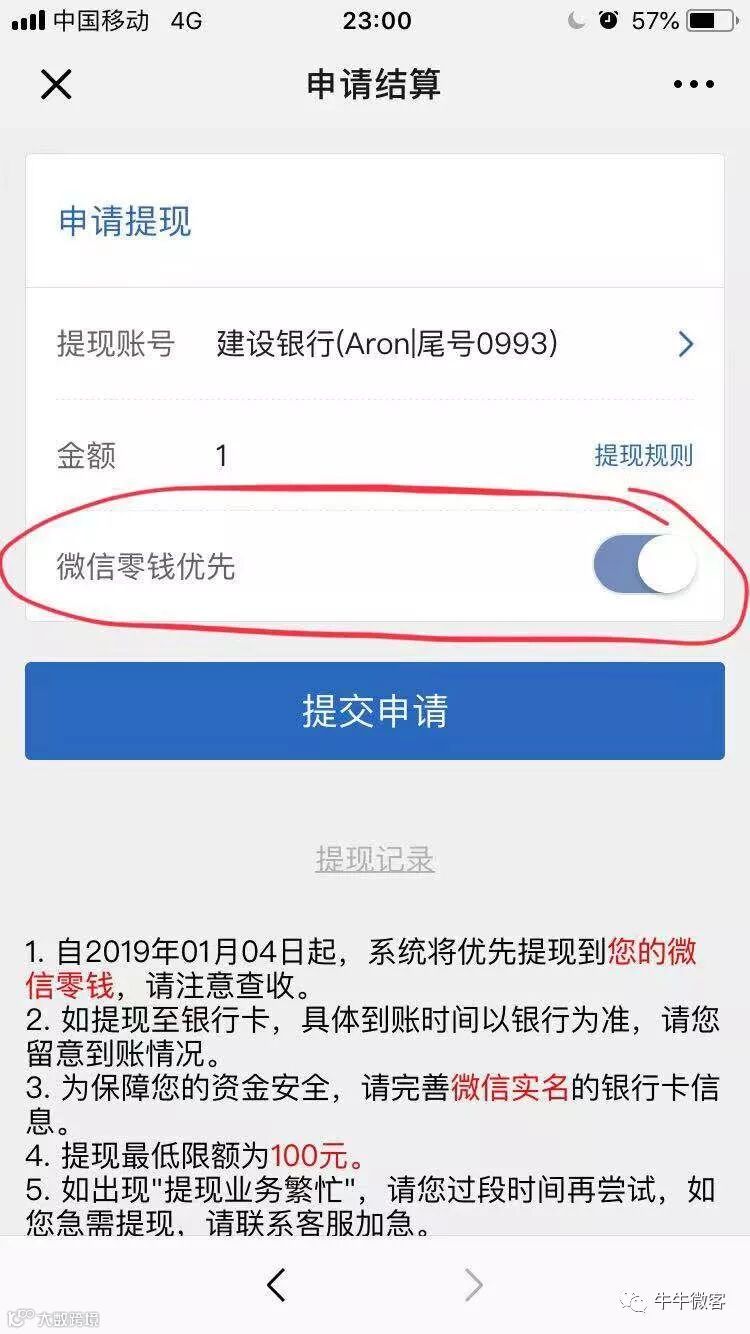 申请提现,默认会优先到微信零钱