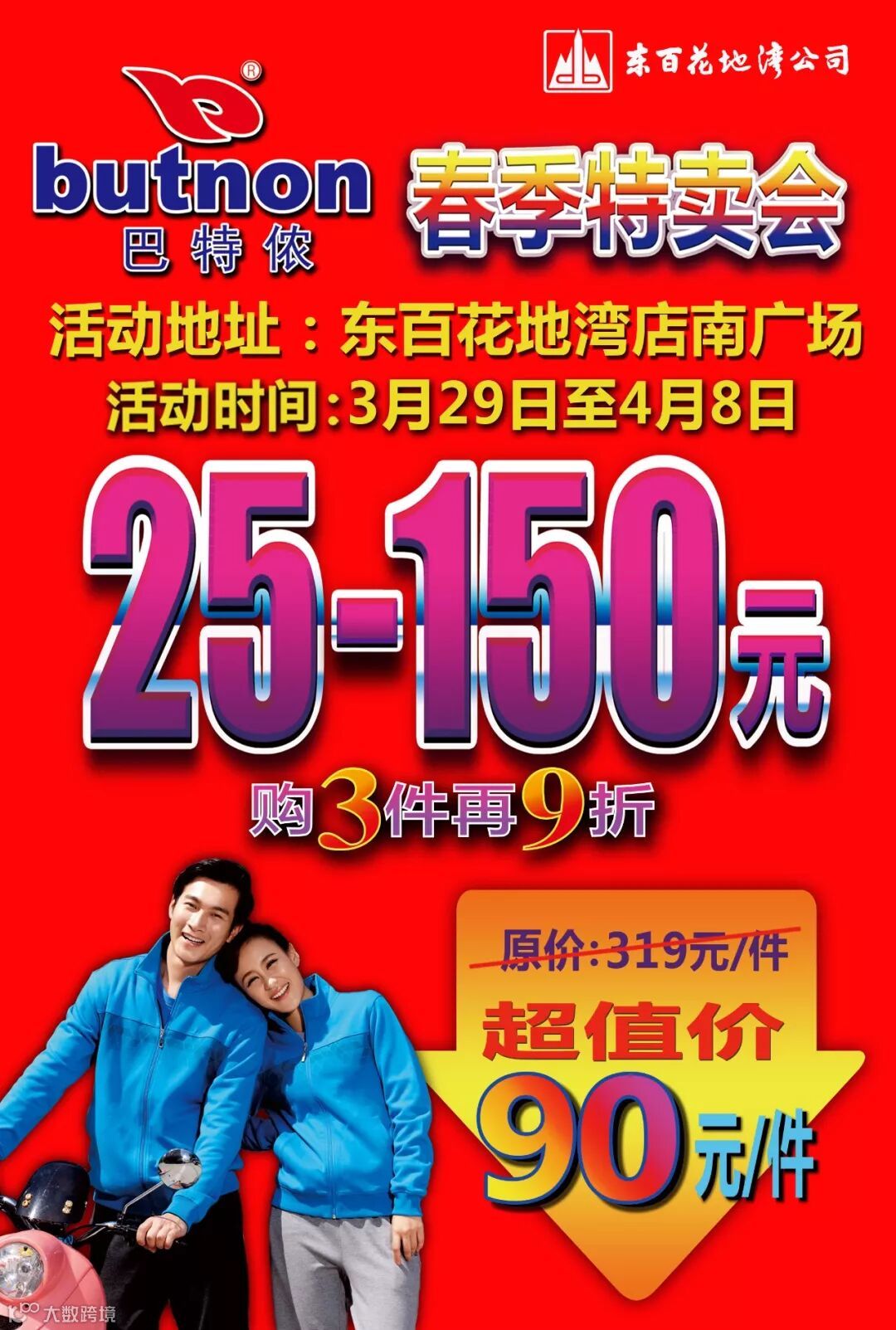 导读:花地湾店南广场:巴特侬春季特卖会,活动日期3月29日-4月8日