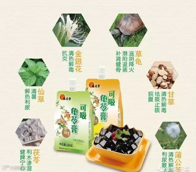 位元堂可吸龟苓膏遵照传统制作工艺和流程,原料真材实料。同时结合传统养生理论,精选药食同源的草本食材提取,如金银花、甘草、茯苓等,打造草本健康的概念。