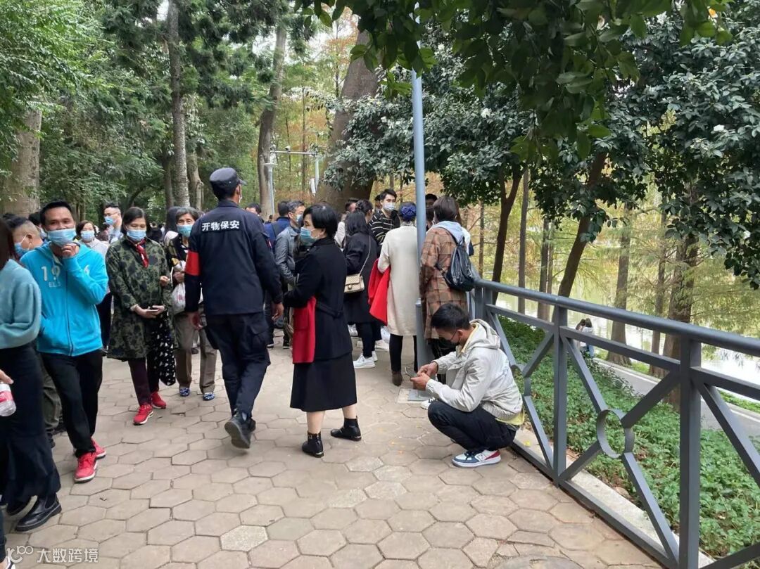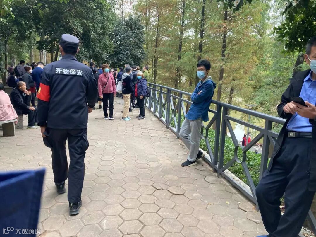 12月18日星期六,征婚园工作人员于下午3:30到达天河公园相亲角,只见相亲角各个路口都被保安拉了几重境界线,不让顾客进入。保安的喇叭不停地叫唤,说受疫情影响,相亲角不开放,众多的征婚人士只好离去,相亲角内基本没有人。