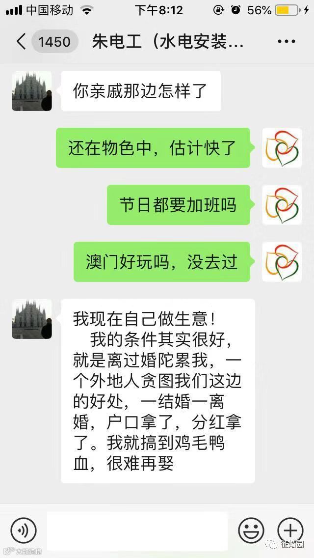 之后,公司工作人员联系河源的亲戚帮他找河源的女生,为了使资料更准确,与冯核实,发现冯没有本科学历,截图如下: