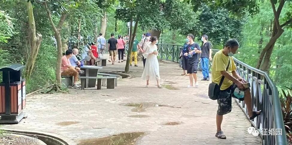 天河公园相亲角,从天河公园西门往东走300米,有一片长长的绿化带,沿北边山坡徐徐展开,冬暖夏凉,绿树成荫,是一个谈情说爱的好去处。