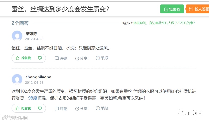 我曾经反反复复做试验,喷熔布口罩耐受电熨斗的温度和丝绸的耐受温度一致,超过这个温度就会造成布料的破坏,这个温度是多少呢?请看下面这个百度截图:
