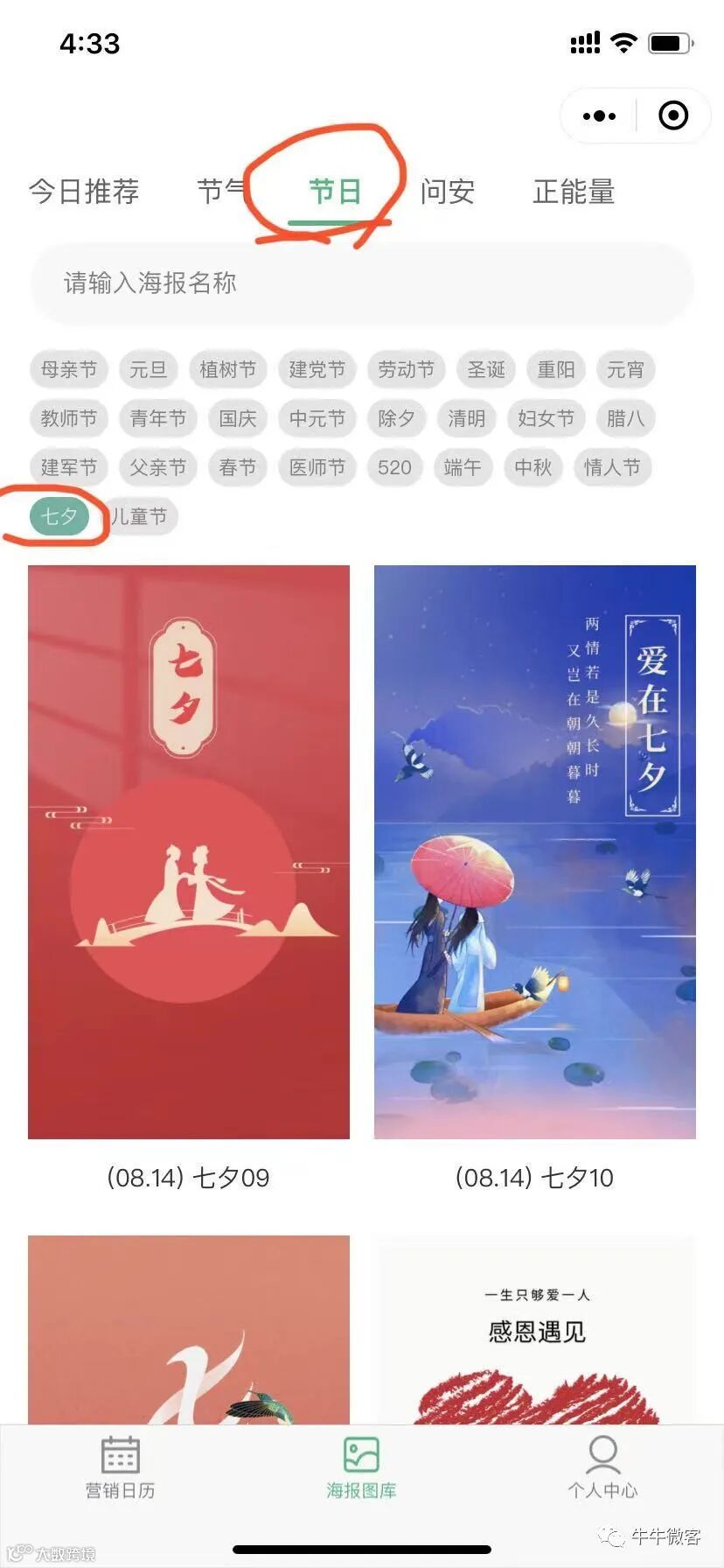 2. 点击公众号菜单“七夕海报”