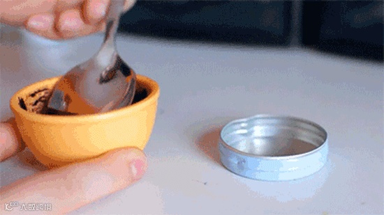 其次,用一把小勺子,将奥利奥中间的馅儿温柔刮除。