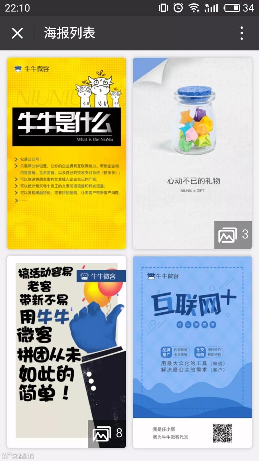 点击海报分享,进入海报列表。海报列表分为系列海报和单张海报。