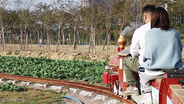 这里最吸睛的是:油菜花田中穿梭的花间小火车!坐上小火车便可轻松遨游花海、穿越溪流,欣赏整片花田,同时沐浴着春日的阳光,十分惬意。