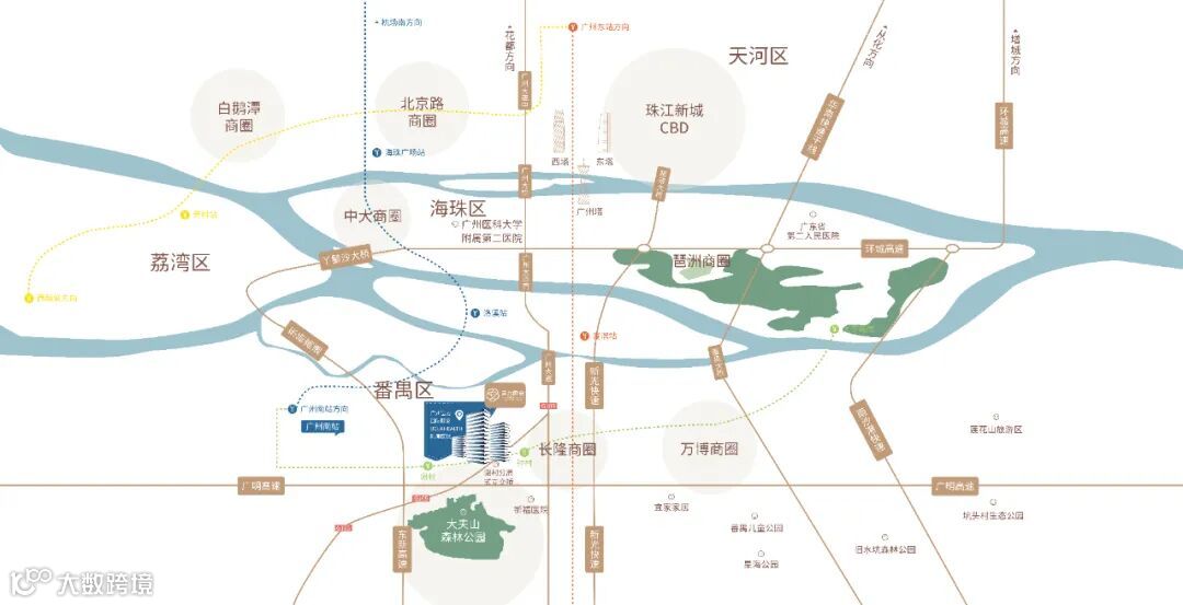 项目位于广州市番禺区105国道与汉溪大道交叉口西北角,交通便利、配套成熟,临近华南快速和东新高速,毗邻钟村和谢村地铁站,约距离广州南站3.5公里,距离长隆旅游度假区2公里。