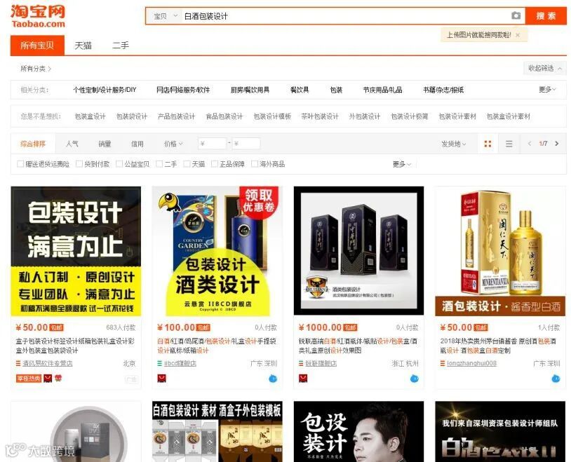 搜索“白酒包装设计”可以找到很多的设计公司的店铺,定制你所需的包装类型或者标签,发快递给你就可以了,简单方便快捷。同样也可以买到酒坛、红布、酒标等材料。