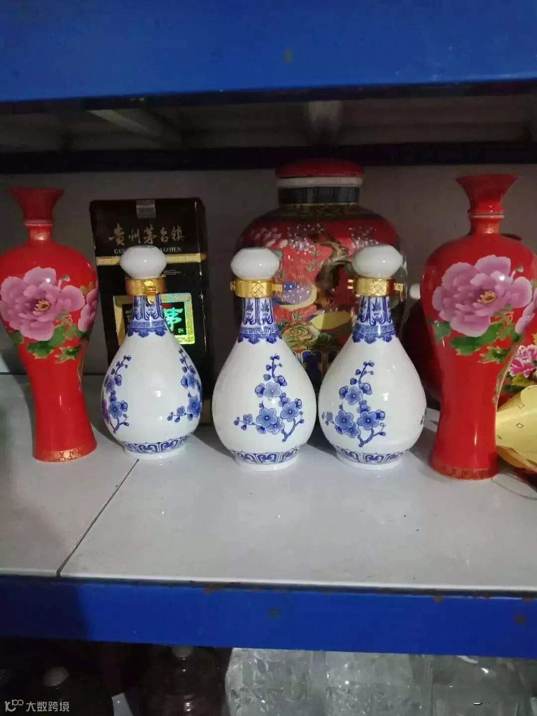 这个呢,使用了青花瓷酒瓶,青花瓷酒瓶不宜帖酒标,直接裸瓶装酒突出青花瓷瓶特色。