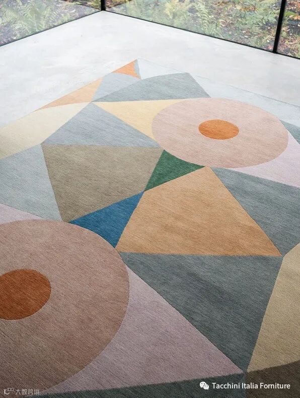 在E63灯再版的一年之后,Tacchini Edizioni再次发现了Umberto Riva更私密的一面。作为一名建筑师和设计师,Umberto Riva从不掩饰他对艺术和绘画的喜爱。在他的作品中,几何图案和颜色交织在一起,创造出精致美丽的抽象主题,就像一场场仪式一般。地毯完全是手工制作的,采用了古老而复杂的打结工艺。这是艺术、工匠技艺和设计的终极升华。