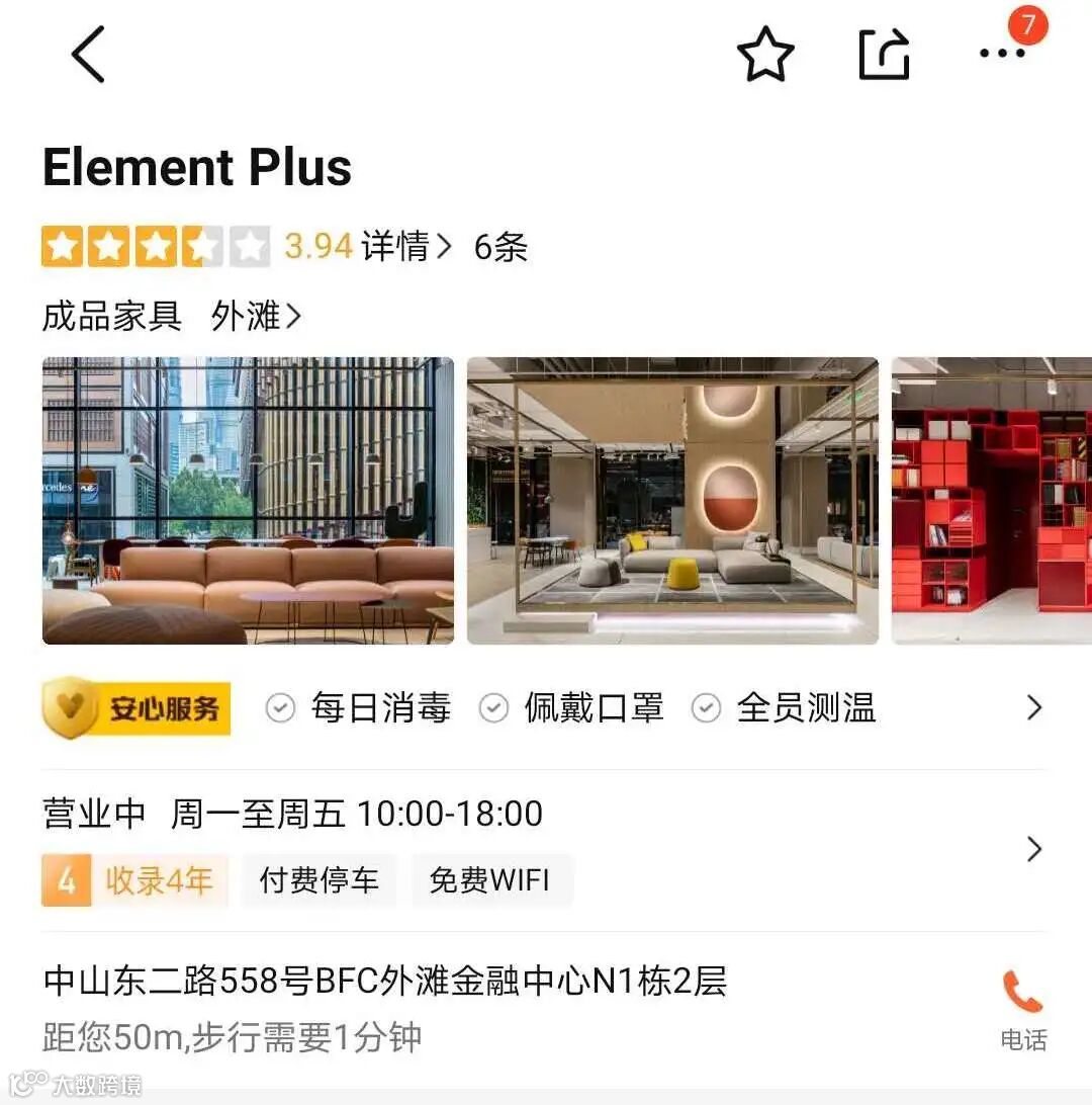 打开大众点评app,搜索Element Plus就可以通过导航,电话找到我们