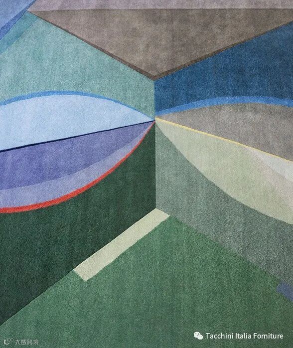 建筑师Umberto Riva最初曾是一位画家。他的绘画作品描绘的大多是抽象的主题,线条的拼贴,空间和色彩。他的作品之一,Nello Spazio是Tacchini Edizioni地毯的灵感来源,地毯使用尼泊尔喜马拉雅的羊毛打结。地毯完全是手工制作,经过漫长而细致的加工而成,沿袭了数千年的传统,只为增添更多现代的魅力,就像是Umberto Riva的抽象作品。