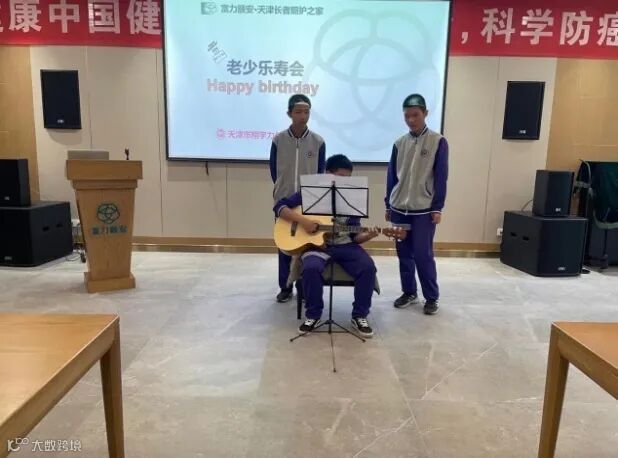 除此之外,活泼可爱的学生们还为老人们带来了吉他弹奏、歌曲串烧、街舞等10余个自编节目。活力四射的演出让老人们看得津津有味,不禁回想起自己的学生时代。