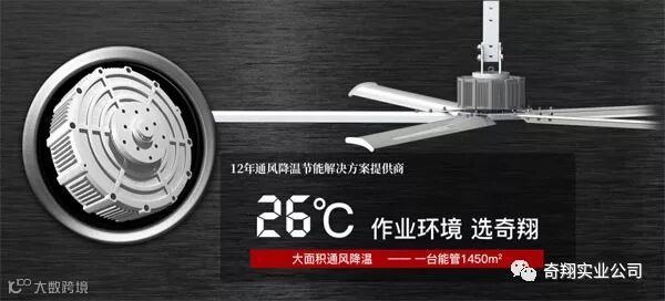 广州奇翔工业大风扇的设计灵感来自航空直升飞机,采用领先空气动力学成果,用奇数5片流线型叶片,制造1~3级立体自然风效应,产生的风量比其它同类风扇多30%,覆盖面积更大,风效更均匀柔和,使用更安全耐用;叶片采用7系高标号航空镁铝合金挤压一体成型杜绝叶片断裂发生;电机选用永磁无刷伺服自驱电机,通过搅动空气,促使空间内的空气形成一个气流循环的效果,从而达到一个最为舒适的环境,奇翔的工业大风扇产品在工业厂房、机厂冷链、物流仓储、生产车间、车站候车室、健身房、体育馆等众多场所,得到广泛的应用。