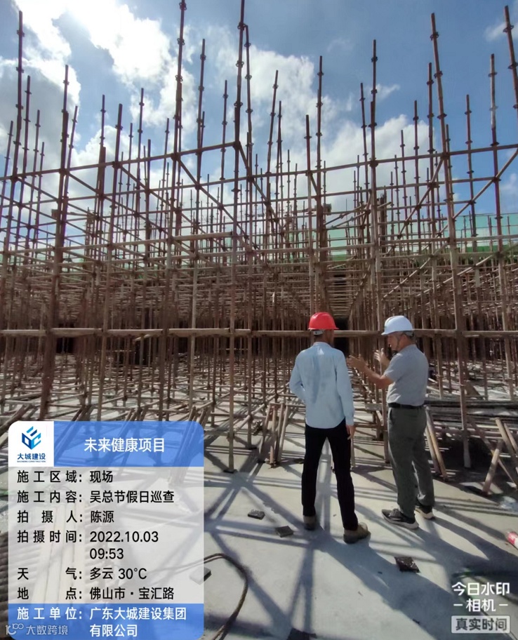 吴伟文副总以身作则,来到“未来健康项目”进行巡查,重点对高支模进行分析和检查,并对项目提出以下要求:一是要强弱项、补短板,扎实、认真做好整改工作;二是要有紧迫感、责任感,全力做好安全工作,喜迎党的二十大;三是要强化学习,充分认识安全工作的重要性;四是疫情防控工作要坚持常态化管理;五是要守纪律、讲规矩,加强廉洁从业意识。