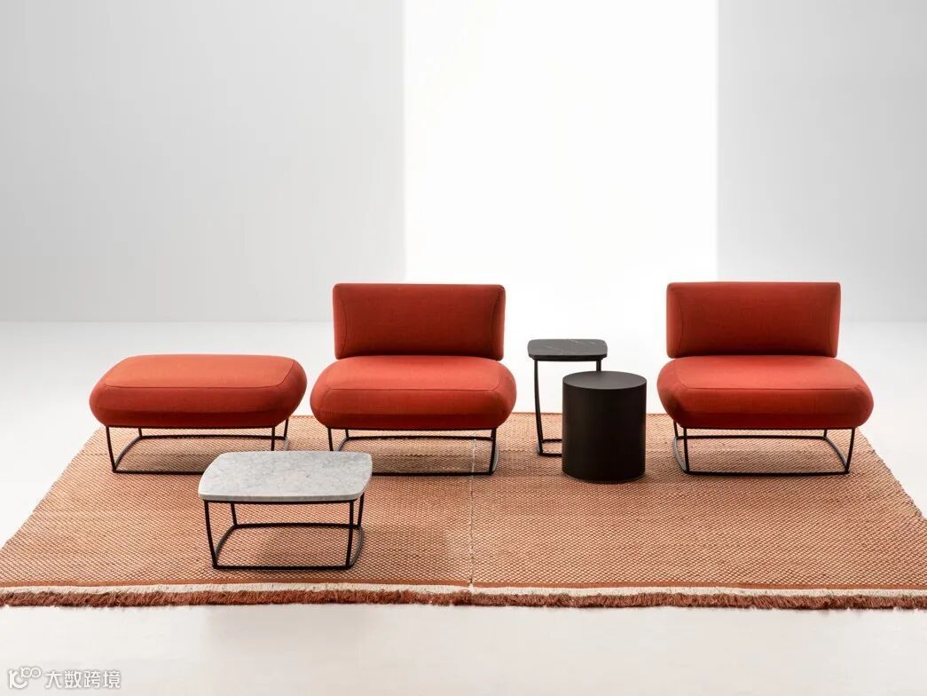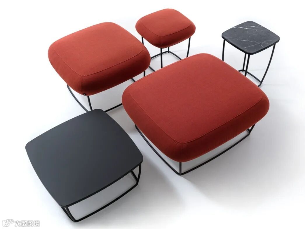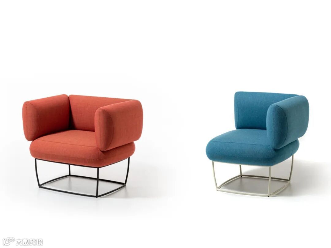 系列中还有两座和三座沙发、脚凳、躺椅及桌子可供选择,可以方便地营造一整个和谐的小空间氛围,而轻质镂空的金属座椅结构底座,则让它们远离了臃肿。