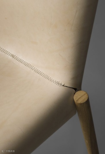 从一张完整的皮革上切割下所需的形状,再以最传统的皮革鞣制技法处理,最大程度保留皮革最原初的气息,和那些常见的通过化学方法使动物皮的胶原纤维在结构上发生变化的速成工艺完全不同,1085 Edition Chair所用皮革100%不使用任何化学试剂,而是将裸皮放在装有植物鞣料的旋转木桶中搅拌,再充分浸泡6个小时。经过鞣制的皮革,不仅更为温顺贴合,耐磨性和耐热性也得到显著提升,并焕发出皮革最初的迷人色彩,这是任何化学染色剂所无法完成的。
