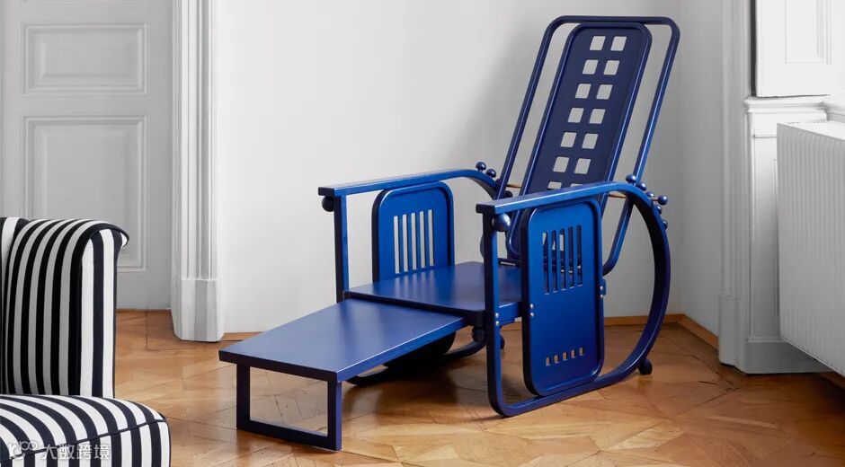 Sitzmaschine可以通过背部的简单机械原理实现靠背斜度的调节,对于疗养院用户而言,这是无比实用的贴心设计,而除此之外,座椅下方还有可抽出式的脚凳设计,可以让扶手椅秒变躺椅,很难想象如此强大的功能性设计竟然诞生在一百多年前,而今复刻的Sitzmaschine被喷刷上了克莱因蓝面漆,让我们再一次目见了Josef Hoffmann天才级别的领先于时代。