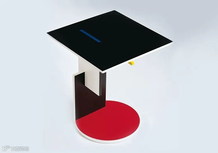 Rood blauwe stoel最初由未染色的山毛榉木制成,1923年在椅子原有的基础上,采用了三原色加黑的色彩方案重新涂漆,这一灵感被视为来源于和里特费尔德同为风格派运动领军人物的蒙德里安的画作。也是同一年,Gerrit Rietveld又根据相同的色彩原理与外形风格设计了Schröder 1边桌,不同的几何图形被以戏谑的方式排列组合,催生了绝妙魅力。